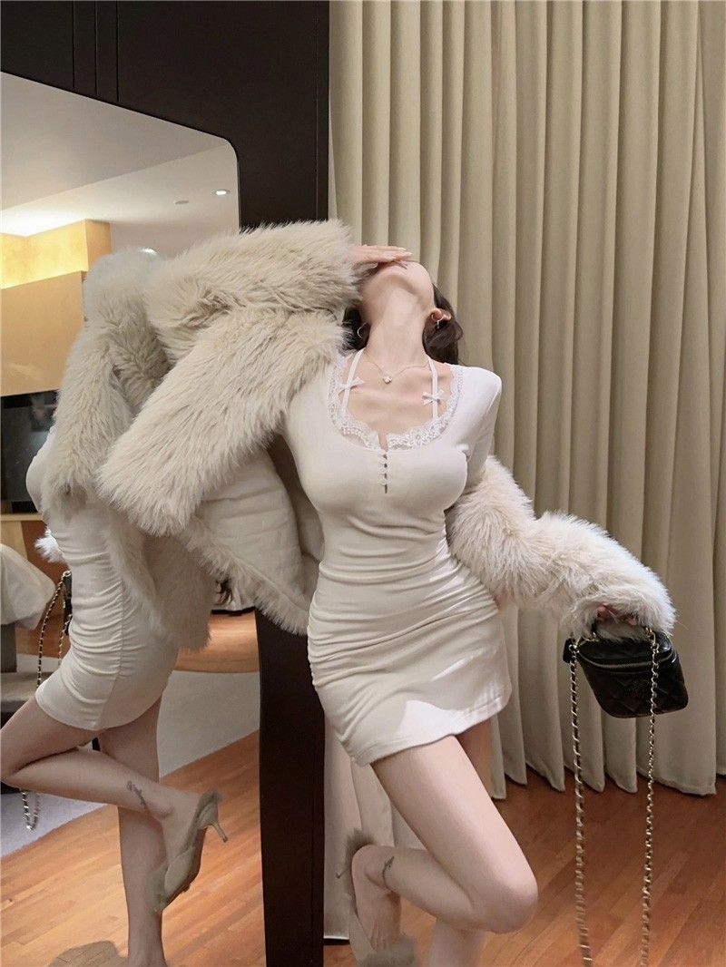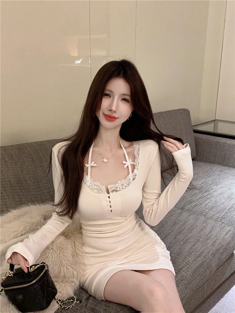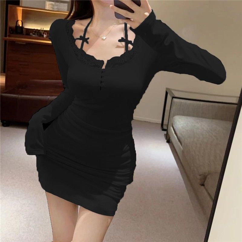 Lace Accent Bodycon Dress – Elegant Slim Fit for Parties & Events